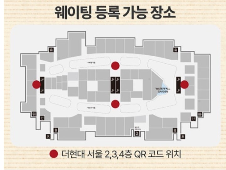 현장 등록용 QR코드는 더현대 서울 내 아래 위치에서 이용 가능합니다: