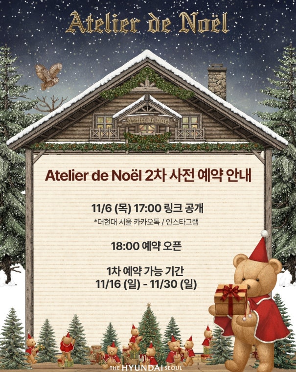 더현대 서울 크리스마스 행사 ‘해리의 크리스마스 공방’은 2025년 11월 1일부터 12월 31일까지 진행됩니다.